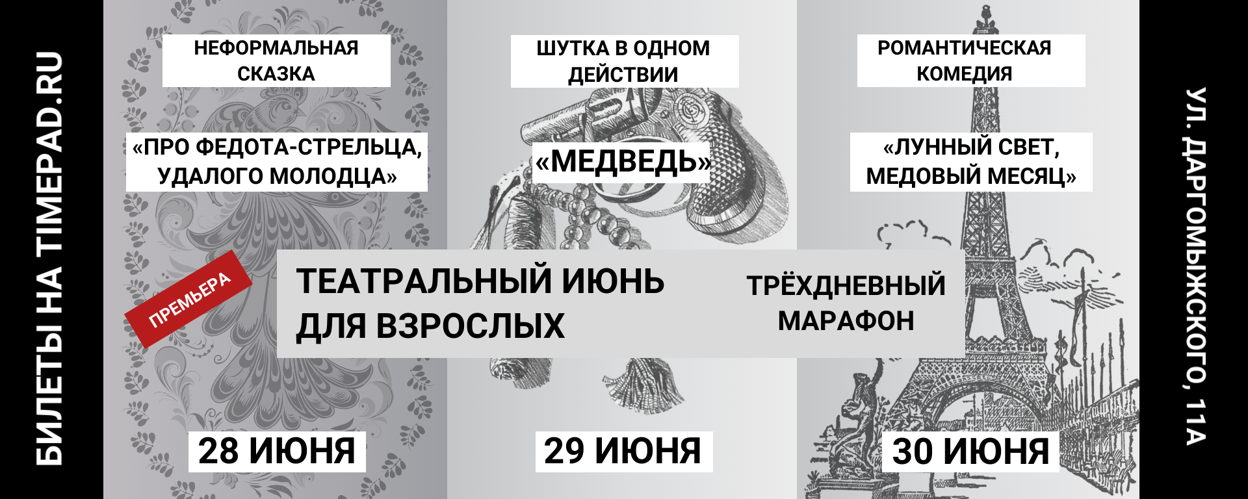 29 июня. Шутка в одном действии «Медведь». Культовая шутка Антона Чехова - легкая, непосредственная, бодрящая уже давно стала одной из визитных карточек нашего театра, бьющей все рекорды по количеству показов. 12+